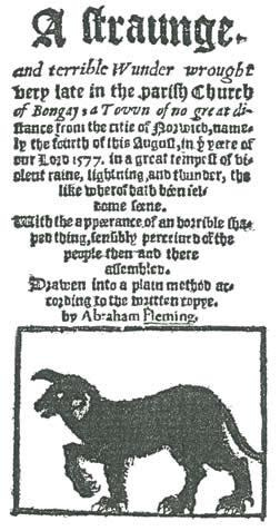 Adams, Abraham (1577). A strange, and terrible wunder. London. via https://en.wikipedia.org/wiki/Black_Shuck#cite_note-13