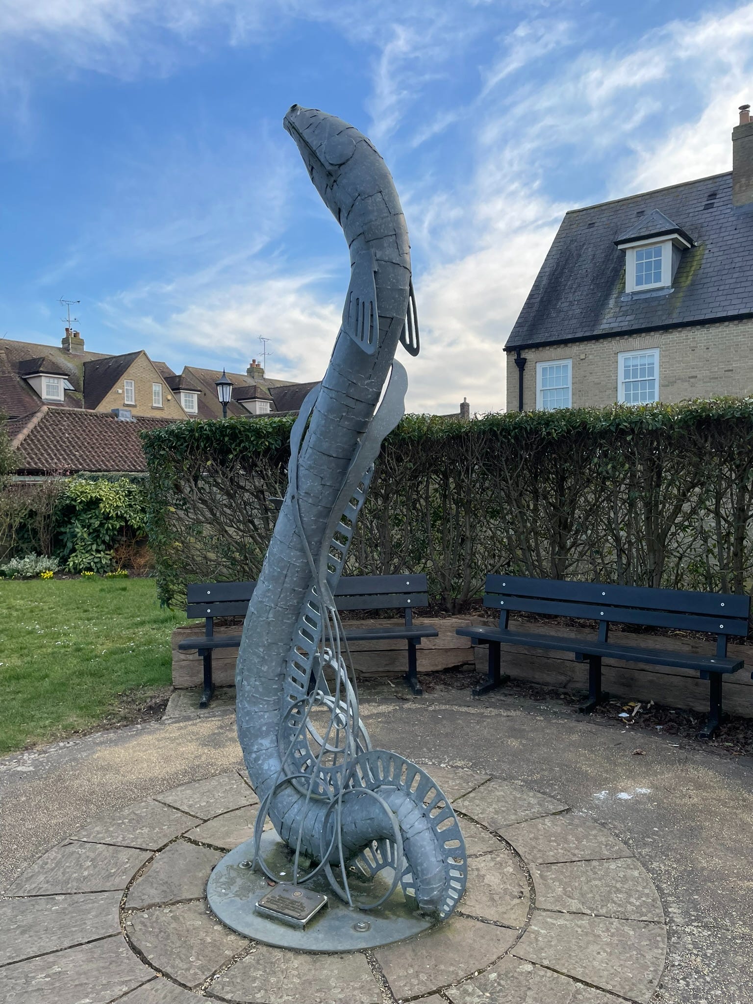 Until King’s Lynn’s new library is open (March 16th) if I want solid research time the closest decent library is in Ely. Not that going to Ely is a hardship! I walk up to the city centre through the Jubilee Gardens. What are now lovely gardens (complete with eel sculptures) was once a busy medieval area of barge channels, workshops and warehouses, along with houses dated to the 12th century, and a pottery kiln likely related to the production of ‘Ely Wares’, using the Kimmeridge clay that formed the fenland island that Ely occupies.